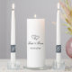 Custom monogram interlocking hearts unity candle set for bride and groom.