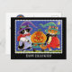 Here they come and there could be trouble! Two little cats dressed as witches, parading their expertly carved pumpkin on a starry night. Say "Happy Halloween" with this fun holiday postcard. All the text can be customized or deleted so you can personalize it with your own words and make it truly unique. Cards are available printed with either a semi-gloss or matte finish.
