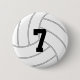 Custom Jersey Number Round Volleyball Button Pin: A round black and white volleyball button with a text box for you to personalize it with your favorite jersey number or any other text, like initials or school letters. You could also change the font type, size and color by clicking the "Customize" button and changing the settings.