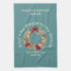 Festive blue JESUS IS THE REASON Christian Christmas kitchen towel, showing a nativity scene inside a festive Christmas wreath. The inspirational quote reads JESUS IS THE REASON FOR THE SEASON in curved text, and underneath there is a placeholder greeting, MERRY CHRISTMAS and ISAIAH 9:6. At the top there is a Christmas greeting plus placeholder name. ALL TEXT IS CUSTOMIZABLE, so you can create your own personalized text. This is a great reminder of the real meaning of Christmas behind the tinsel and baubles, and would make an ideal addition to your festive tableware and party supplies. Choose from a wide selection of Christian Christmas cards and gifts designed by Berean Designs.