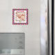Custom Jolly and Festive Christmas Pink Photo Picture Frame Square Magnet. A bright and colorful autumn and winter colors fridge magnet. Replace the photo and text with your own to celebrate your Yuletide memories. Give as a stocking filler keepsake gift to family and loved ones. In warm fall colors of pink and green, with hints of icy blue. A budget friendly present for grandparents, parents, couples, siblings and best friends. A merry color block pattern frame borders the picture. Use as a cheap way of decorating the Christmas or home office. Have a maximalist Christmas!