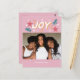 custom joy trendy photo pink girly cute Thank You Card for christmas, holidays. Personalized christmas card with photo ,family name, names, firstname, text, message in front. Colorful modern card with joy word, sparkles, stars, leaves. Girly christmas holidays card for women, sisters, family, mothers, relatives, young adults, teenagers, best friends.
