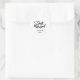 Sticker is shown in a heart shape with a charming Just Married print and shown with sample names and date.