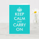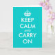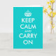 Turquoise Keep calm and carry on greeting cards. Cute vintage card for friends, family, coworkers, corporate employee, colleagues, staff, personnel, team. Personalizable text and custom background color. Create your own keep calm and carry on parody. Great for Christmas, Holidays, celebrations etc.