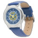 Custom kid's watch with yellow police sheriff star badge design. Personalized wrist watches for children. Unique Birthday gift idea for boys and girls. Create one for future cop, son, grandson, nephew, little brother, sibling, daughter, granddaughter, cousin, friend, child, grandchild, little or big sister etc. Fun law enforcement theme gifts for future officer, constable, security guard, deputy sheriff or secret agent. Also great as Christmas present for the Holidays. Includes blue color band. To protect and to serve. Great for cops and robbers games.