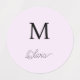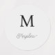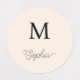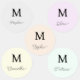 Circle clothing labels to customize for kids with a large initial for size and name template.