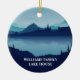 This cool custom lake house Christmas ornament features a serene blue river surrounded by trees and your personalized text for a family reunion, camping trip, or summer vacation home rental. Customize with your last name or other group name.