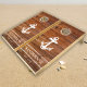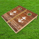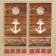 The rustic lake house themed cornhole set features a wood background, and it can be customized with your family's name and established year, below the anchor graphic on the design.