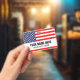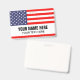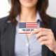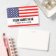 Custom lanyard name badge with United States flag. Plastic tags with metal clip on and lanyard cord option. Customizable text. Add a photo on the back optionally. Useful ID tags for office, volunteer work, events, meeting, gathering, 4th of July party, festival, sports teams, clubs, political delegation and more. USA pride flag of America.