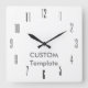 Custom LARGE 10.75" SQUARE Wall Clock, Grade-A acrylic Blank Template. EMPIRE Modern Font - All 12 Hours Templated. All hours option also available in the Shop plus dozens of font options. CUSTOMIZE: Simply select "Customize" then delete "CUSTOM Template" & begin to personalize your clock. IF YOU WISH TO CHANGE THE SIZE OR COLOR OF THE NUMBERS: Simply "select all" in Edit Options, then click on the Font Size or Color drop down menus to change them. Design your own personalized, customizable wall clock. All font and style options available as templates. Great for a birthday, Christmas, Father's Day, Mother's Day or other celebration gifts for him, her, a teenager, a boss, work colleague, a friend, or for your home or office.