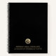 Custom notebook designed for law firms, attorneys and legal professionals featuring a solid black background, company name and contact information in classic golden typography. The brushed gold legal-themed logo can be used as is or replaced with your firm's logo. Organize your thoughts, ideas, and important information in style.