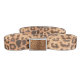 This custom belt features a leopard print design on both the strap and the interchangeable metal buckle. Pair this belt with jeans, trousers, or a dress to pull together a great look.