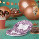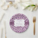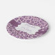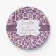 Chic, modern, pretty wild animal big cats leopard print paper plates in purple and lavender with a purple stripe and white edged with purple banner that you can personalize with the wedding couple's names and wedding date!