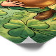 A fun St. Patrick's Day print featuring a smiling leprechaun gnome in a green hat holding a pot of gold amidst scattered shamrock clover leaves, with personalized text.