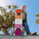 Beautiful and modern orange, white and purple colored block stripes pattern design (the lesbian flag colors). Add name of your choice to customize this skateboard.