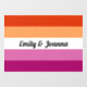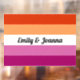 Celebrate Pride Month in style with our Lesbian Pride Window Cling. This elegant window cling features the iconic lesbian flag design, serving as a powerful symbol of love, inclusivity, and support for the LGBTQ+ community. Add your name, or your and your parther's name, or any other text you want to proudly present to the world!. Crafted with high-quality materials, this cling is easy to apply and remove, making it perfect for displaying on windows, glass doors, or any smooth surface. Let your home or business radiate acceptance and pride as you embrace diversity with this beautiful and meaningful window cling.