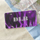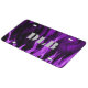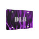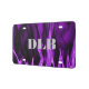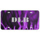 This specialty plate shows an abstract purple smoke art print with custom initials.