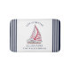 Create unique personalized nautical bath accessories for your lake house. Life is Better at the Lake saying is decorated with a sailboat illustration with red and white sails and navy blue and white stripes. Template makes it easy to personalize this nautical bath mat with your name or family name.
