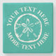 Custom limestone coasters with sand dollar shell. Elegant gift idea for friends, family, couple, coworker, boss and others. Classy Birthday present for him or her. Stylish script typography. Also great as table decor for beach wedding party. Turquoise or custom color. Thick square coaster available in different materials like sandstone, marble and travertine.