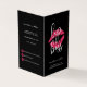 Chic folded cards let you share your business contact info, application instructions and tips & tricks, without fumbling with extra cards! Design features a chic color palette of crisp black, white, and magenta pink, accented with bright pink lip illustrations and "lip boss" on the front. Four-sided design is pre-printed with application tips and additional tips and tricks on the inside, and your business information, contacts and social media profiles on the front and back. Customize the existing text or leave as-is.