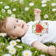 Celebrate your new arrival with our "Lucky Charm" baby t-shirt! Featuring a sweet hand-drawn duckling and a whimsical dancing ladybug inside a heart, this boutique top can be personalized with any name. Part of the "Sweet Little Lady" collection, it makes a darling baby shower gift or a cute outfit for a garden-themed first birthday.