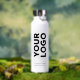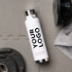 Advertise with your business logo, slogan, company name, website or other custom text on 2 sides of a branded white water bottle. Replace the sample logo and text with your own in the sidebar. Your logo can be any color. Your brand symbol can be any shape. This is eco friendly swag your employees, customers and clients will keep and appreciate!