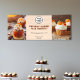 Draw attention to your fall baked goods with this customizable market banner, perfect for bakeries, home bakers, or seasonal pop-up stands. The design features a warm autumn theme and includes space for two photos—ideal for showcasing your signature treats—and replaceable social media icons to help customers connect with your brand. Highlight seasonal favorites like pumpkin spice cupcakes, apple crumble, and cinnamon rolls, all while giving your display a professional, inviting look. Personalize the text, logo, and images easily in minutes—no design experience needed!