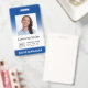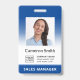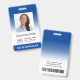 Upload your own logo and photo and make custom name tags and employee id badges for your company. Easy to use template. You can resize the photo, logo and bar code with the design tool. To resize the photo you first need to unmask it. Fonts and colors except the white part of the gradient are customizable.