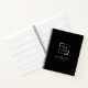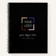 Simple custom company logo with slogan and website address on color editable black background, no minimum order quantity and no setup fee, great business notebook with logo.