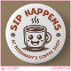 Promote your business with these customizable buttons that feature a charming illustration of a smiling coffee cup, bold typography that says, “Sip Happens,” plus a customizable text placeholder where you can add your shop name. Modify the design by adding your own logo (or use this logo as it is) and your business name to create unique accessories to promote your business and brand. Display these buttons on staff uniforms, barista aprons, or t-shirts; give them away as tradeshow freebies; or sell them to coffee-loving clients and customers. Perfect for coffee shop, cafe, or coffee bar owners.