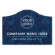 Custom sign with customizable business name and company logo on a printed dark blue marbled background. You can change fonts and font colors with the design tool.