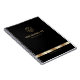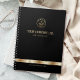 Elevate your brand with this sophisticated corporate notebook. Featuring a sleek black cover with a custom logo and company name in elegant gold print, this notebook exudes professionalism and style. The design is clean and minimalist, with a subtle gold ribbon adding a touch of luxury. This high-quality notebook is perfect for taking notes, brainstorming ideas, and making a lasting impression.