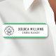 This customizable green name tag is a professional and versatile choice for any workplace. It features a clear layout with space for your name, title, and company logo.