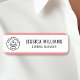 This customizable pink name tag is a professional and versatile choice for any workplace. It features a clear layout with space for your name, title, and company logo.