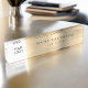 Custom add your own Logo Luxury Executive Gold Foil Metallic Stainless Steel Minimalist Business Name Plate with white lettered typography for the monogrammed add your own name and profession or job title. The Classy Foil Metal Business Professional Name Plate can be customized with your name. Please contact the designer for customized matching items.