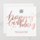Custom Logo Faux Rose Gold Script White Birthday Card