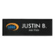 Contemporary name tag design that can be personalized with a logo, name of employee and job title or description.