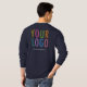 Easily personalize this navy blue long sleeve shirt with your own company logo and custom text. You can optionally print on both the back and front.* Unisex style for men and women available in other colors and adult sizes S to 2XL. Made with preshrunk cotton. No minimum order quantity and no setup fee.