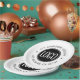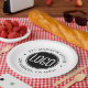 Personalized paper plates featuring your business logo, and a text template that is easy to customize.