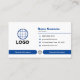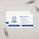 Customize colors or keep navy blue and insert your own logo on this two sided business card design. Template fields for name, title or position, logo or photo on front and back, phone number, email, address, credentials or licenses, and website. Optional fields can be removed if not needed. Change the background color, the banner color, icon colors, and text colors to match your logo. Ability to move and resize all elements by using the customization tool.