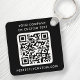 Double sided keychain with your custom logo, QR code and custom text on a black or custom color background. Change fonts and font colors, move and resize elements with the design tool.