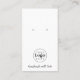 The front of the card features a clean, minimalist layout with fully customizable text and logo placement, allowing you to showcase your business name, tagline, or signature phrase such as “handmade with love.” The earring holes are simulated in the artwork, serving as a precise visual template for placement.