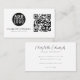 This simple black-and-white business card will be the perfect way to promote your business. Add your own logo and QR code for customers to quickly scan and learn more about your business. All text on the front and back of the card can be customized.