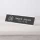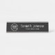Name plate with interchangeable color plastic insert. Simple, modern design with your custom logo on a black background and template fields for your name and title or company name.
