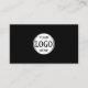 Black add your own logo professional business card with QR code and social media icons on the back.