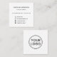 Elegant and modern, square business cards with customizable logo on the back and template fields for your name and address on the front. It's easy to upload your own logo to the template. The design is minimal with black text on white paper. Other paper types are also available and you can change the background color with the design tool. Generic, professional business cards for any industry. Icons included for Instagram, Facebook, Twitter (hidden, open design tool) and Pinterest (hidden, open design tool). Follow us on Facebook @businessstationery for news, deals and more. For custom requests and additional matching marketing materials contact us at info @ perfectlycustom.com (remove spaces)