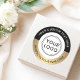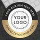 Stickers featuring your custom logo surrounded by a black and golden look (printed image with a brushed metal effect simulated in the artwork) border. Ciustomizable text top and bottom. Move and resize the logo with the design tool. Text, font and font colors are customizable. A great way to create personalized stickers for your business or event