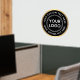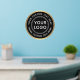 Customizable, black wall decal for promoting your business or service. Add your own logo and customise the template text. All colors except for the golden gradient border are customizable and you can change fonts, move and resize elements with the design tool. Note that the golden border is a printed color gradient and not real gold foil.