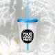 Easily personalize this 16 oz acrylic tumbler with straw and lid with your own company logo and custom text. It's BPA-free with clear double-wall construction. Custom printed tumbler cups with your business logo can advertise your brand as promotional giveaways, corporate gifts, or as drinkware for your corporate events. Available in other colors. The dimensions are 4 inch x 6.25 inch. The straw length is 9.25 inch. No minimum order quantity and no setup fee.
