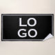 This custom beach towel features a solid black background with a white frame. A sample logo is placed in the center. You can personalize the mat and add your own custom company or professional business logo, or your own image of your choice.